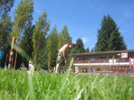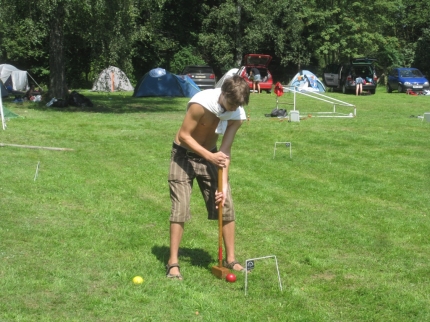Předposlední prázdninový víkend byl ve znamení třetího turnaje kategorie A. Pořádal se v rámci Summer tour – Iron Man na koupališti Vyžlovka, kde se kromě kroketu hrál večer stolní fotbálek a přes den plážový fotbal. Tropické teploty panovaly po celý víkend a tak žlutá pláštěnka tentokrát zůstala skryta na dně batohu. Trávník byl skvěle připravený a účastnici fotbalového mistrovství světa v Africe si mohli o takové travičce jen zdát.