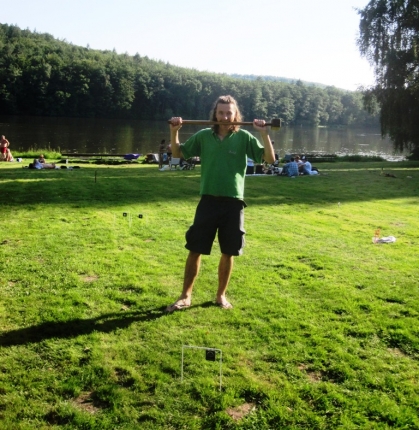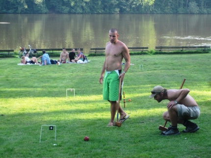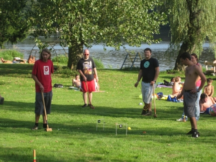 Předposlední prázdninový víkend byl ve znamení třetího turnaje kategorie A. Pořádal se v rámci Summer tour – Iron Man na koupališti Vyžlovka, kde se kromě kroketu hrál večer stolní fotbálek a přes den plážový fotbal. Tropické teploty panovaly po celý víkend a tak žlutá pláštěnka tentokrát zůstala skryta na dně batohu. Trávník byl skvěle připravený a účastnici fotbalového mistrovství světa v Africe si mohli o takové travičce jen zdát.
