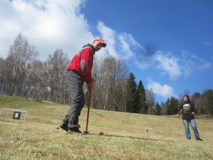 Zdravíme všechny krokeťačky a krokeťáky v nové sezoně. Vůbec poprvé se „áčkový“ turnaj konal mimo území středočeského kraje a to v Albrechticích v Jizerských horách, kde se zaměstnanci firmy Pomi stylově loučili se zimní sezonou na sjezdovce U kapličky. Jak známo, v Albrechticích se kroket mastí o sto šest, a tak účast 44 hráčů a hráček v hlavním turnaji, až tak nepřekvapila. Potěšující bylo, že si turnaj nenechali ujít ani ostřílení borci a pravidelní účastnící Free croquetové tour. Výjimkou byl Vít Martinec, který svědomitě léčí zraněné koleno a těžce pracující Jan Novotný. S počasím jsme opět měli nehoráznou kliku a kromě občasného větříku, panovaly ideální podmínky.